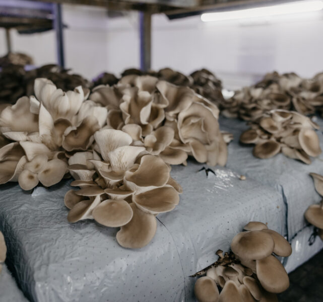 Als de eerste oogst achter de rug is, verhoogt de teler de temperatuur van de ruimte en verlaagt deze na een week weer. Hij bootst hiermee de zomer en herfst na zodat de oesterzwammen weer gaan groeien. Na de tweede oogst is het stropakket ‘op’ en voert de teler nieuwe pakketten aan. Het verteerde stropakket komt als meststof op akkerland en dient weer als voeding voor andere gewassen. Hieronder belichten wij de verschillenden stappen uit de teelt.